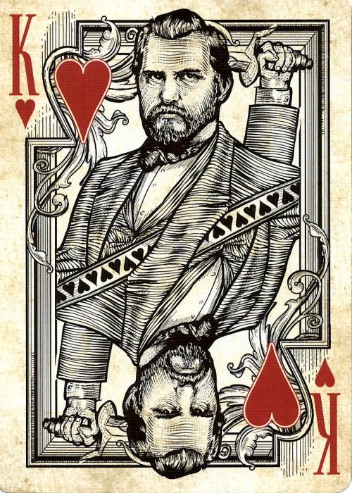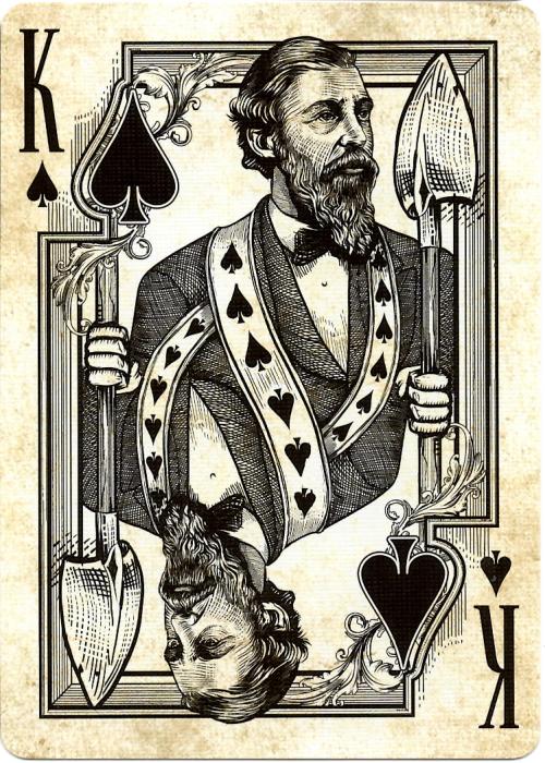 Kickstarter 2014 project by Jody Eklund. 3 decks have been printed: Golden Spike, limited Gold Edition and very limited Black Ink edition. The Bicycle branded version was produced by USPCC, but the Black Ink and Golden Spike (Gold) versions were printed by Legends.