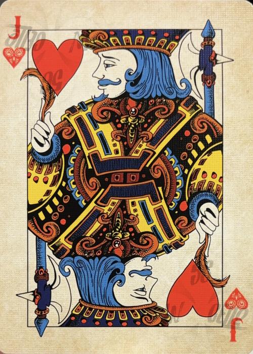 Satire bodes poorly in text, it has long been said. So, a cleverly-dealt jab is best drawn as a likeness instead! Meet ROYAL PULP, the subversive new deck from Gambler's Warehouse. Deep mineral blues and vintage blood-tones saturate a marble-cream-parchment backdrop, while comic court characters pose pompously for portraits, utterly betrayed. Featuring artwork from Brad Foster and Blackout Brother, ROYAL PULP goes to print in Summer, 2015. From the twisted minds at Gambler’s Warehouse comes this hilarious new deck that blends the sensibilities of classic pulp comics with a traditional 54-card deck. Artists Brad Foster and Blackout Brother have skewered – sometimes literally – the images of the standard court cards into buffoonish caricatures, complete with a leering joker. The custom Ace of Spades is a riotous splash of color. Each card appears against a cream-parchment coloring that suggests the “pulp” printing process that gave the deck its name.
