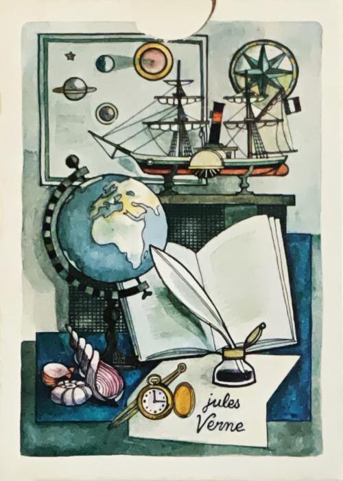 Cards released on the occasion of the opening of the Jules Verne Museum in Nantes, an opening that corresponded with the 150th anniversary of the death of Jules Verne in that City. The deck features the wonderful original designs of Jean Bruneau.