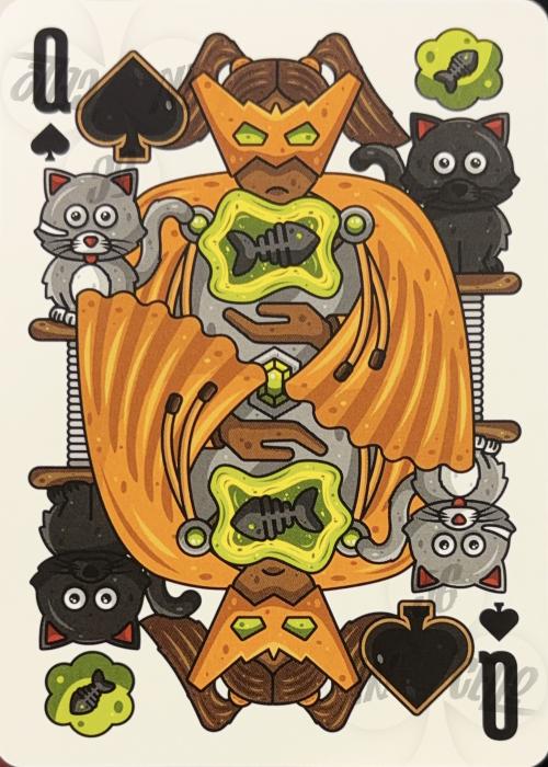 https://chsddecks.com/collections/unlikely-heores/products/unlikely-heroes-playing-cards Unlikely Heroes is the CHSD Playing Cards 2022 Patreon's Deck. The stock here is what's left over from the project. The deck's theme is superheroes with very unlikely or useless superpowers, such as an atomic baby or someone who can remove the colour from paintings. The Decks Each deck includes: A custom card back design 40 custom card faces 12 custom superhero court cards 2 extra superhero Jokers Two gimmick cards (one double back and one duplicate 9 of diamonds) Please Note: The tuck cases for this deck are hand-printed and, as such, have minor inconsistencies in the final printed design. Playing Card Producer: WJPC Playing Cards Materials: German Black Core Stock Finish: Non-Linen, Gloss Quantity Produced: 500 (Of which 200 have been finished) Tuck Box Production: Hand Pressed & Constructed With A Platen Press