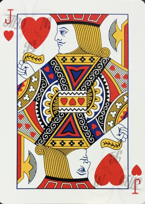 This fully custom deck features our meticulously redrawn 1885 Bicycle faces customized with individual faces on the courts of Raya’s human friends and family. Blending vintage charm with a personal touch, this deck offers a truly one-of-a-kind design.
