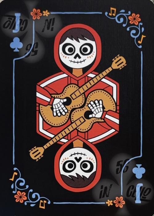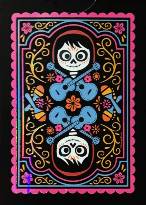 Deal out Día de los Muertos memories with Disney Coco Inspired Playing Cards by Bicycle. The holo0foiled tuck case shines with the multicolored brilliance of a powerful alebrije spirit animal, while the court cards feature skeletal designs of Miquel, Héctor, Ernesto de la Cruz, and many more!