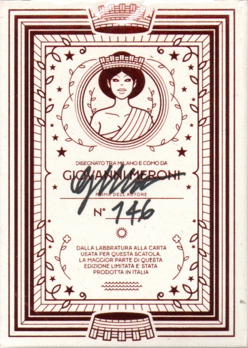 From Italy, with love. Explore Italy through deck of playing cards. Italia Lucente is the most "Italian" Signature Edition of Thirdway Industries. The deck houses Italia Radiosa cards with red lacquered edge print by Doliberg in Bergamo. The box is made of Italian paper with red metallic foil, printed by Boshiero & Newton in Jesolo. Each box is hand-signed and hand-numbered by Gio himself. EXCLUSIVE TWI PATREON. Eternal Edition (EE) - This deck is mainly reserved to TWI Patrons. Hand-signed and numbered in Italy by the author, Giovanni Meroni. Lacquered edge print by Doliberg in Bergamo. Luxury box produced by Boshiero & Newton in Jesolo, with Italian papers and foil. Cards made by USPCC in the US with metallic ink. Limited Less than 600 decks made.