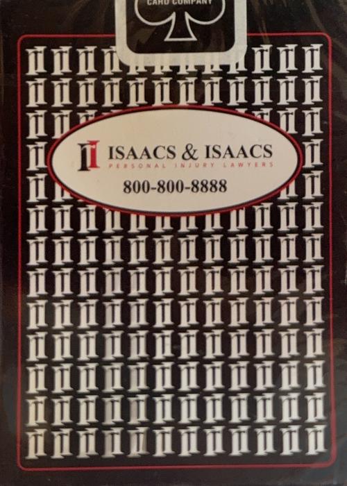 This is the bicycle branded deck part of a pair that was put out as an advertisement deck for an injury law firm.