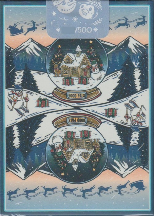 Features red and blue foil on the number cards. Limited Edition of 500! Features a number seal between 001 and 500. Fully custom deck featuring Christmas art on every card. Snow Globe back design. Court cards feature a range of different Christmas characters!