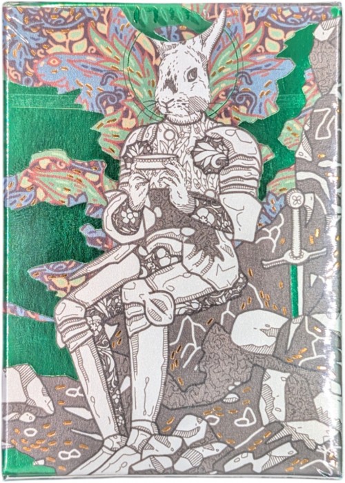 The Castle in the Sky is a limited-edition, full-bleed, deck of art poker playing cards along with a unique display case and gallery-quality art prints. It is the culmination of ten years of artwork adapted onto a new canvas, as we follow the Nenya cats and Coney rabbits as they take to the air. With your help creating and growing this project, I hope to reach for the sky, and bring a piece of it back for you. The Number Cards can be arranged (in an unconventional way) to create a large illustration of a castle floating up in the sky. For Silver Lining Edition, all the artworks on both sides are foiled. The tuck box has an extra color foil: gold.