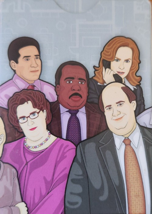 Scranton This hit comedy chronicles the foibles of disgruntled office workers — led by deluded boss Michael Scott — at the Dunder Mifflin paper company. I never watched the show, had enough of work "drama" in the corporate world. Very cool box, the pictures of the cast continue on the sides.