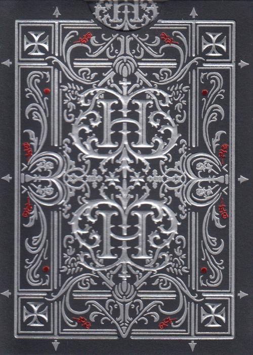The Scarlet edition deck features a shining red gilding, to represent the sacred blood of secret pacts and silky curtains of gilded Victorian mansions. While the Ravenclaw back design features blue raven feathers, the Scarlet card back features the intricate IH monogram and little red roses.