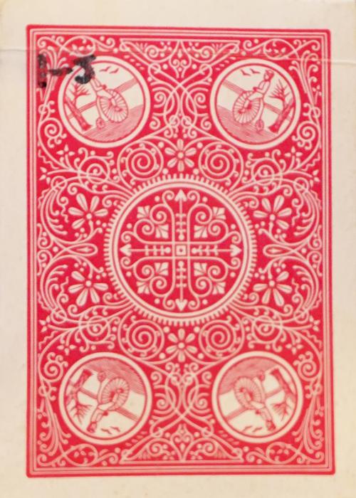 This bicycle deck called expert back was issued in 1895 and discontinued in 1943. I believe early additions were one way backs, but the design is almost identical. This is not a one way back.