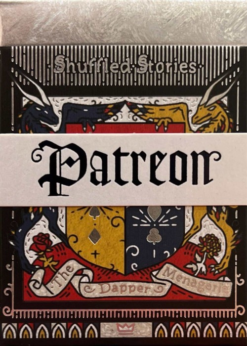 Shuffled Stories is JBP's take on classic yet custom and luxury playing cards. For Volume 1, the Dapper Menagerie is based on JBP's first ever custom deck - Culturae Animalis Playing Cards. The artwork on the cards feature anthropomorphic animals as Courts and Jokers and full-bleed borderless Numbers. The back design feature thin border. For this exclusive Patreon Edition, the deck comes with a paper band that marks it as coming from JBP's Patreon and the year of release. The black colored box comes with textured silver foil. The cards are gilded with black holographic foil.