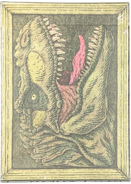 One of the possible 54 animals which to be pulled from the Blind Mystery Deck from Zoo 52 series. T-Rex - Head of a T-Rex, green, horizontal illustration From an unknown space, we arrive at an unknown paradise. Lunzi brings you a brand new chapter—Zoodeck Here, each deck is an independent life story, together weaving an infinite dimension of nature and existence. Zoo 52 consists of 54 images of animal wonders, magnifying the "aesthetics of texture" on paper. Most of the works focus on the upper body or torso of the animals, magnifying the texture of fur, wings, scales and skin to transform the texture of life into a perceptible visual language. Zoo 52 is not only an animal art encyclopedia, but also a ticket to nature—leading you into a secret realm where wildness and aesthetics intertwine, embarking on a journey of unexpected encounters with the origins of life. A painting made with the same sincerity as always: The entire process was completed by hand with a dip pen, capturing the animals' most authentic state with delicate brushstrokes and ingenuity: their fur and scales, their diet and habitat, their seasons, birth and growth... Each line carries the creator's inspiration and breath, condensing into a tangible warmth.