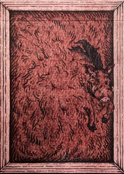 One of the possible 54 animals which to be pulled from the Blind Mystery Deck from Zoo 52 series. Warthog - A deep red warthog, a tribute to The Lion King From an unknown space, we arrive at an unknown paradise. Lunzi brings you a brand new chapter—Zoodeck Here, each deck is an independent life story, together weaving an infinite dimension of nature and existence. Zoo 52 consists of 54 images of animal wonders, magnifying the "aesthetics of texture" on paper. Most of the works focus on the upper body or torso of the animals, magnifying the texture of fur, wings, scales and skin to transform the texture of life into a perceptible visual language. Zoo 52 is not only an animal art encyclopedia, but also a ticket to nature—leading you into a secret realm where wildness and aesthetics intertwine, embarking on a journey of unexpected encounters with the origins of life. A painting made with the same sincerity as always: The entire process was completed by hand with a dip pen, capturing the animals' most authentic state with delicate brushstrokes and ingenuity: their fur and scales, their diet and habitat, their seasons, birth and growth... Each line carries the creator's inspiration and breath, condensing into a tangible warmth.