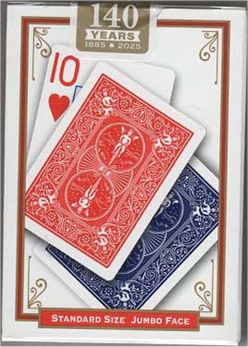 Jumbo Bicycle deck in red, 140 Years tuck seal. Released in 2025, copyright of deck is 2021.