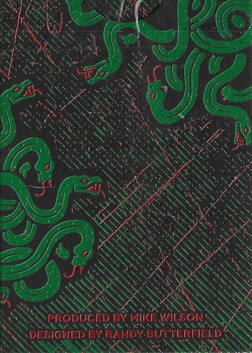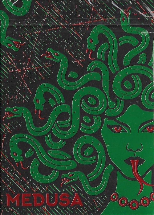 Inspired by Greek Mythology, the Medusa Deck has a mesmerizing Back design of green and orange snakes. Printed by Legends Playing Card Co., the Cards will be printed on a Holographic Foil material.