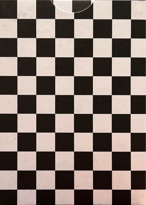 ANYONE has worked with Chicago-based industrial designer Benjamin Edgar on a conceptual deck of cards, in addition to a memento keychain. The playing cards feature a borderless checkerboard back design and an atypical numbering system referencing new deck order. A - 52. VERSION 2 - Released in 2025, only 500 decks made. Tuck box is made of matte stock with black colored text which are debossed. Back design is borderless black Checks with off-red square. Printed in WJPC.