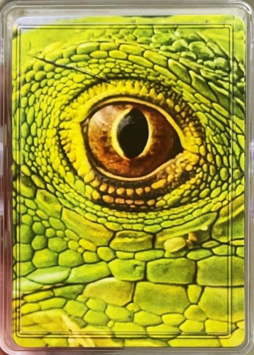 A close up photo of a young iquana's eye in Costa Rica. I took the photo myself and love the look of this high quality deck of cards.
