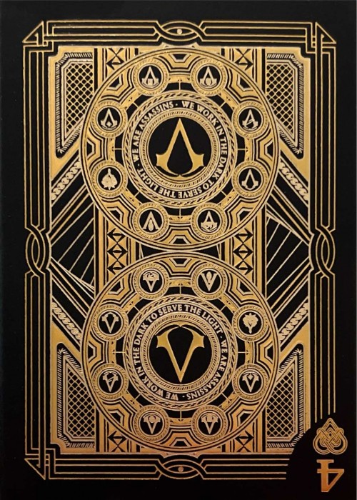 In Collaboration with Ubisoft, Room One Cards present officially licensed deck of their famous franchise. Introducing Assassin's Creed Legacy Playing Cards. Last year, this deck series was released. This year, it comes back with remastered illustrations and upgraded deck features. The deck features a homage to the rich lore and characters of the Assassin's Creed series. Experience the blend of artistry and functionality in this exclusive series. The HIDDEN BLADE Edition features a meticulously designed Hidden Blade tuck box accompanied by an extra slipcase, adding an element of mystery and sophistication to your collection. The tuck box features the hidden blade that's basically synonymous with the Assassin's Creed series. Also, the extra slipcase as a cover, boasts intricate embossing and hot foiling, elevating the aesthetics of the deck. The Courts of the deck are a tribute to the legendary figures from the Assassin's Creed universe. Each card features meticulously illustrated characters from the series, such as the iconic Assassins and formidable Templars. The intricate designs capture the essence of these characters, showcasing their unique personalities and roles within the series saga. The Number cards in the Assassin's Creed Playing Cards deck are not just placeholders; they are intricately designed elements that seamlessly blend with the overall theme of the deck. Each number card is adorned with custom pips that reflect key symbols and motifs from the Assassin's Creed universe. Whether it's the suits representing different factions or the intricate detailing that ties back to the historical settings of the games, every number card is a work of art in its own right. The Card Back is designed for the discerning player, this deck features a 2-way card back. No matter how you hold your cards, the cold-foiled, symmetrical design remains perfectly aligned, revealing the hidden Assassin's insignia and historical motifs. Flip through the deck, and in the corner, you’ll spot an assassin sprinting—just like in the iconic Assassin’s Creed gameplay.