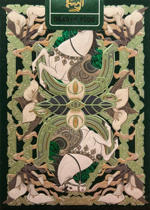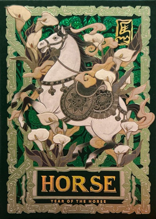 Every New Year, we embrace hopes and expectations, sending heartfelt blessings for the future. The 2026 Year of the Horse Exclusive is here for you! In Chinese history, horses were not only part of the battlefield and long journeys, but also symbols of prosperity and ceremonial order. During the Tang Dynasty, when the nation reached its peak, fine horses held their heads high—unassuming, yet full of spirit and elegance. Emerald green emerged in this era, witnessing the sound of camel bells and horse hooves, and carrying hopes for journeys, communication, and safe returns. The blend of green and horses is woven into the card design: deep, layered colors form the base, enhanced with embossing and green foil accents, creating a look that is luxurious yet restrained. Hot foil and embossing Calla lily motif on Joker Double-sided symmetrical back Eastern aesthetic Joker 2026 Year of the Horse edition Limited to 1000 Exclusive hot foil seal with serial number