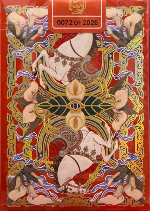 Every New Year, we embrace hopes and expectations, sending heartfelt blessings for the future. The 2026 Year of the Horse Exclusive is here for you! The gift box features a distinguished red and gold color scheme, symbolizing "good fortune at the forefront and abundance of wealth." Gilded gold meets vibrant red in a version exclusive to the gift box, with extensive foil stamping that radiates a warm luster as light and shadow play across its surface. The noble combination of gold foil and embossing channels the galloping power of the steed into a restrained and orderly visual structure—subtle yet commanding. The card backs are enhanced with a luxurious cold-foil technique, making the horse appear to leap forward, mane flowing and strides vigorous, embodying the Year of the Horse’s spirit of progress and auspicious meaning. As a symbol of luxury, exclusive gilded edges are indispensable; all three decks within the gift box feature matching gilded-edge treatments. The GILDED Edition of Standard Year of the Horse is ONLY available in a COLLECTOR'S SET! It's the same cards, yet added with red foil gilding.