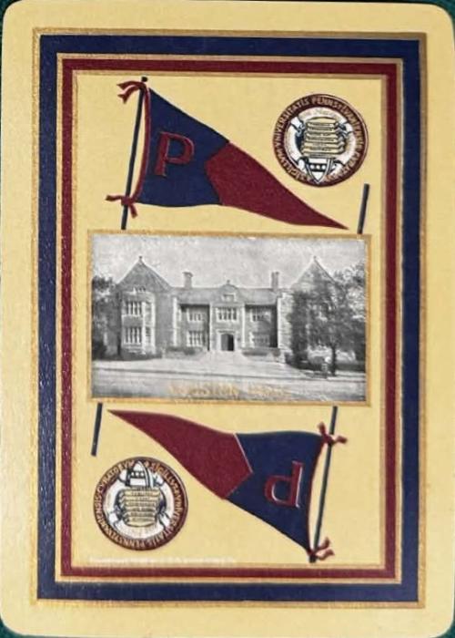 One of six universities depicted on Congress decks. This one is very tough to find. Back design shows Houston Hall, which was the first student union built on an American college campus (1896)
