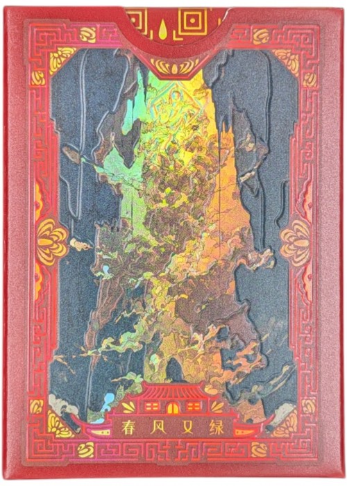 This project is jointly produced by TCC and 无理生长. From the initial conceptualization of the artifacts to the completion of every illustration, 无理生长 carefully shaped the project’s spiritual core. Based on photographic references of the original museum relics, the team reorganized their structures, established a cohesive visual style, and meticulously refined the linework, ultimately bringing the entire playing card series to completion. TCC extended this vision through printing craftsmanship, re-adapting textures, symbolic elements, and details. Flawless printing and techniques bring these imaginings to life on the cards and in their interplay with light. In the illustrations, we chose to reinterpret these ancient relics in a personified form. Take the Mother-and-Child Elephant Zun as an example: this ceremonial vessel from three thousand years ago captures the tender moment of a mother elephant carrying her child. We reinterpret it: the mother elephant becomes a human figure, embodying the guardian of wisdom, while the young elephant transforms into a lively “new life,” nestled by her side. To collect them is to embark on a journey of encountering civilization. - Custom-designed - Double-layer tuck - Full illustration set & selective holo foil - Fine embossing & selective cold foil - Black core paper and Linen Finish - Gilded Edges ChunFeng (春风又绿).With the spring wind, the land renews its green. A poetic expression of renewal — where change arrives quietly, guided by time rather than force.