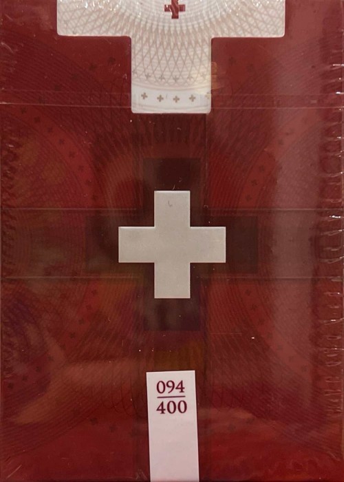 The Legal Tender: Swiss Franc playing card deck is the latest addition to the globally inspired Legal Tender series from Kings Wild Project, envisioned and meticulously crafted by designer Jackson Robinson. This new release continues the series’ tradition of transforming the artistic and cultural heritage of world currencies into luxurious playing cards that are both functional and collectible. With the Swiss Franc edition, Robinson set out to capture the essence of Switzerland’s banknotes—renowned for their innovation, precision, and visual storytelling. Each card in the deck was individually illustrated, with Jackson drawing directly from the textures, colors, and symbolic themes found in real Swiss currency. Rather than simply replicating banknote elements, he reinterpreted them through his signature engraving-inspired style, creating a visual experience that balances reverence with artistic reinvention. From the vibrant foiled gradients to the geometric motifs and language-rich layouts, the deck honors the Swiss Franc’s distinctive vertical orientation and its thematic focus on abstract ideas like time, light, and communication. The result is a beautifully cohesive set of cards, where every suit, court card, and pip reflects both the aesthetic depth of Swiss design and the handcrafted detail that defines the Kings Wild brand. More than a deck, Legal Tender: Swiss Franc is a tribute to the fusion of form and meaning—a celebration of Swiss precision, culture, and creativity through the lens of world-class playing card artistry. The Gilded Edition comes with a custom numbered seal run along the bottom of the deck. The cards are gilded with ruby red metallic foil. There are only 400 decks made.