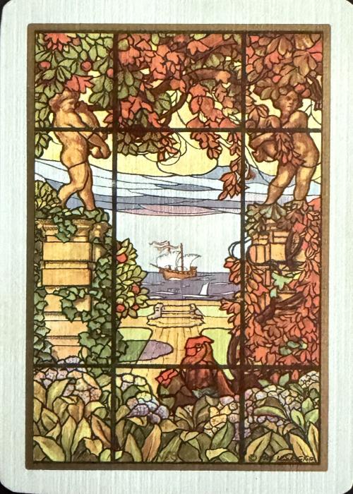 Back design shows a vista with a ship in the background