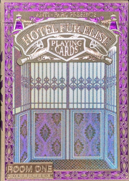 The Hotel Fur Elise Playing Cards are a tribute to the haunting tales of lost souls and forgotten tragedies. Where vengeful spirits linger, forever trapped in the moment of their demise. Inspired by the tales of haunted houses. These decks blend the hotel’s lavish, early-century aesthetic with the unsettling stillness that followed the breach. Ornate patterns frame glimpses of the tragedy, turning each card into a piece of the grand, terrible spectacle that now forever haunts its halls. An eternal servant of the hotel is stationed sentinel on this case. With a tilt of the box, the lenticular print shifts, and the spectral porter comes to life. His hollow grin following you, one hand eternally bound to the control lever. Handle his image and feel the chill of his unfinished duty.