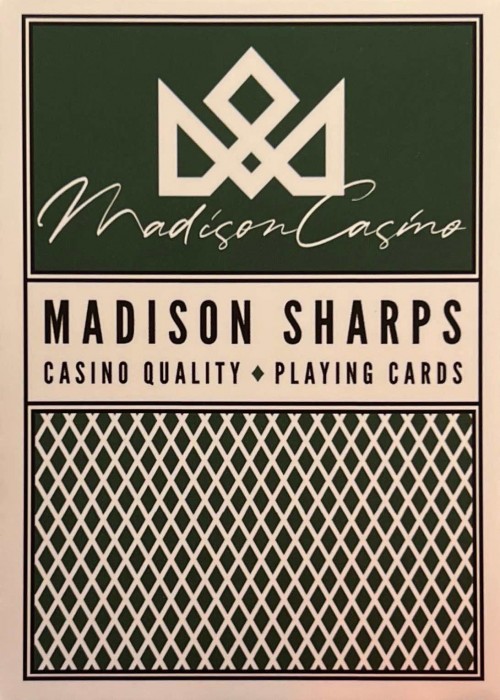 MADISON SHAPRS A deck of playing cards designed to complement the Poker Set (a case filled with poker chips) to allow you to host the perfect games night! This deck is the perfect choice for blackjack, poker and all kinds of gambling sleight-of-hand. Made for Gameplay MADISON SHARPS is designed to imitate the classic look of poker playing cards commonly found on casino tables. The design is a two-way logo on top of full-bleed pattern. The deck also includes Poker Hand rankings guide.