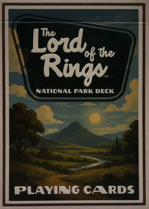 As a companion to the exclusive Middle-Earth licensed Jigsaw Puzzle, Jackson Robinson presents the Lord of the Rings National Park Playing Cards. All 52 cards feature "Park Poster" style art of Middle Earth locations - full-length illustrations along with the name on the corners. The artworks are generated using AI - the creator had announced transparency regarding usage of AI as well as permissions to use the artworks. The Jokers are a diptych illustration of vintage park promotional billboard - 3D letters of "Middle-Earth" with selected scenes inside each letters. Standard Edition has clear cello-wrapping