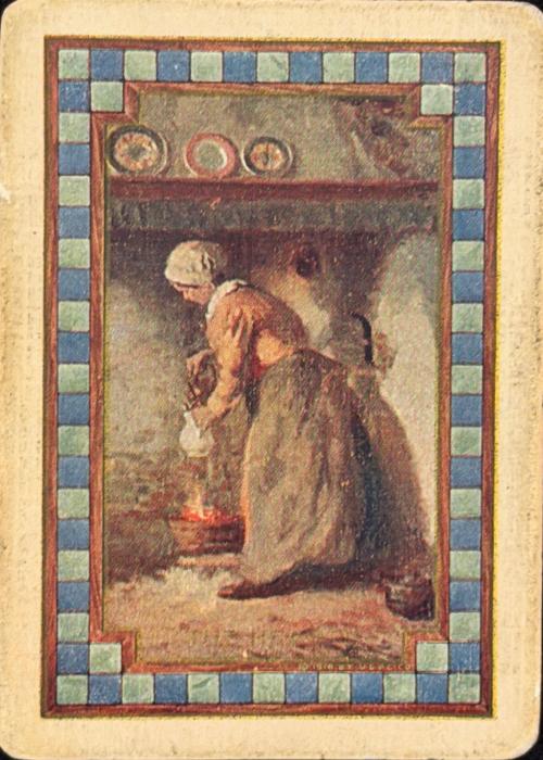 Also known as "Mutter", this back design shows an elderly woman over a fireplace